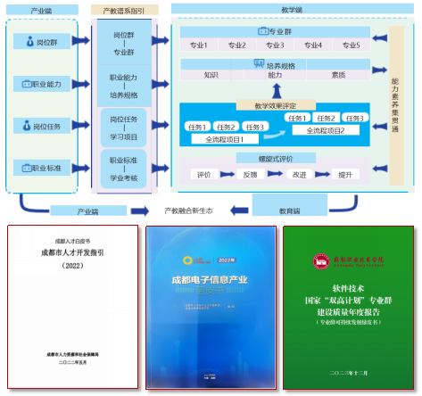 一是办学机制系统化。依托成都高新区,联合省软件协会,引入华为、京东方等链主企业,政行企校多方在校内共建集产、学、研、训、创、赛功能于一体的成职融创产教园,设立园区管理委员会,构建育人、协同等校企合作“五机制”。建立联席会议制度,依托园区产业人才供需信息平台和专业群建设发展专家智库等“一平台四库”建设,开展岗位能力特征、人才需求预测等分析,共同开发“产教谱系图”和“知识能力素养集”,持续发布人才白皮书、产业蓝皮书、专业群发展绿皮书。探索实践四方共建共享机制,形成基于“能力素养指标”可测可评的专业群建设发展“随动”机制,实现人才培养和产业需求精准对接。