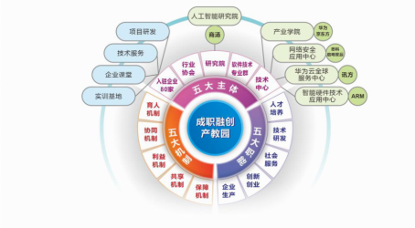 图3 集产、学、研、训、创、赛功能于一体的成职融创产教园