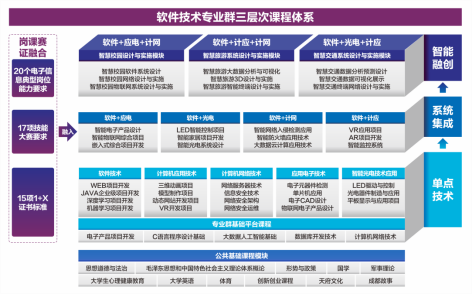 二是专业群建设集约化。对接成都高端软件等重点产业链,以产业结构映射专业结构优化专业链,按照“专业基础相通、职业岗位相关、技术领域相近”原则集约化选择组群专业。以“底层共享、中层融通、上层互选”优化模块化课程体系,以“校企混编、双向交流、项目共担”搭建结构化师资团队,以“空间共筑、平台共享、资源共建、成果共享”打造无界化“空间+资源”,在软件大楼内按照产业链上下游分层分类集约化精准配置课程、师资、空间、平台、文化等产教要素资源,形成“上下楼就是上下游、产业园就是生态圈”的园校企融合发展格局。在园区内以核心专业匹配链主企业,共建华为ICT、京东方新型显示产业学院;以特色专业服务产业链上下游重要节点企业,共建讯方成职解决方案基地、永朔企业课堂等育人平台;将企业项目教学化改造,转化企业生产项目和资源,开展订单制、定制化人才培养,提升人才培养供给质量。