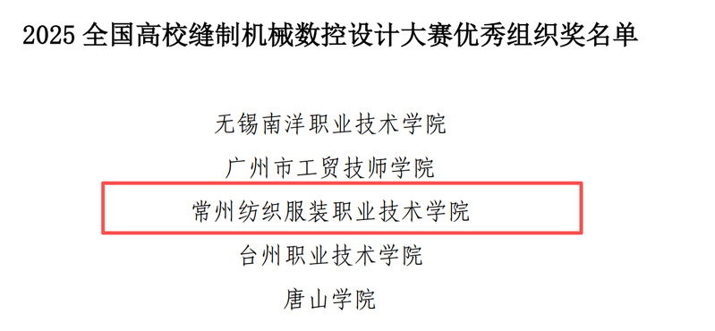 我校学生在各赛道表现出较高专业水平,赢得了评委们的高度认可,充分展现了作为全国纺织服装特色强校的深厚办学底蕴,三大赛道共获得一等奖6项、二等奖3项、三等奖9项,成绩位居所有参赛院校前列。6名选手脱颖而出,成功入围CISMA2025上海总决赛的巅峰舞台,在决赛中他们继续努力拼搏为校争光,与本科组同学同台竞技,展现出良好的竞赛风貌。最终,在工业用缝纫机数控编程大赛决赛中斩获全国亚军。此外,在赛后表彰大会中我校荣获大赛优秀组织奖。