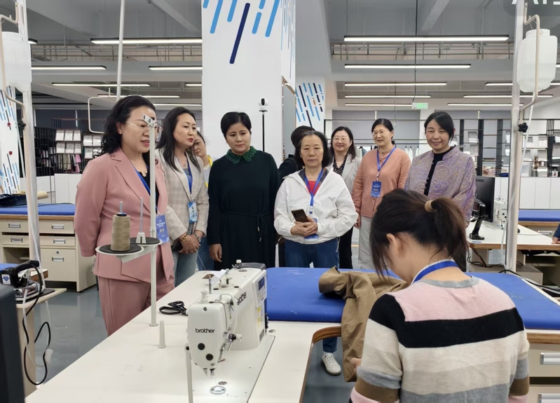 本次竞赛分为理论考试和实操考试两部分。理论考试采用闭卷机考方式进行,主要检验选手的理论知识水平,该部分成绩占竞赛总成绩的20%。实操考试,要求选手在180分钟内完成一款经典夹克的制作,从肩线拼接、袖肘弧度处理、拉链缝制,再到最终的整烫定型,全环节覆盖夹克制作的关键工艺,全面考验选手的工艺熟练度与细节把控力。大赛期间,常州市总工会副主席宣建强、常州市人力资源和社会保障局副局长朱岩、江苏省纺织工业协会秘书长张仁乐、常州市总工会劳动和经济工作部部长王赟枫、天宁区总工会主席赵浴宇和副主席蒋厉英和我校党委委员、副校长张文明莅临比赛现场指导。